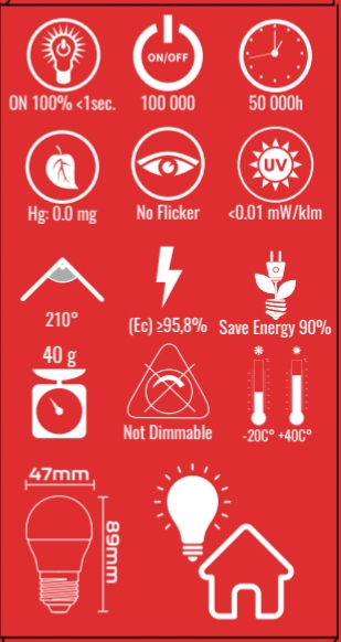 Wysokiej jakości żarówka LED o mocy 9W - odpowiednik klasycznej żarówki E27 G45 75 W. Wyposażona jest w mleczny klosz i trzonek E27. W żarówce zastosowane są wysokowydajne diody SMD , barwy 6500K = Biała Zimna oraz mocy aż 855 lumenów. Żarówka zachowuje wysoki współczynnik oddania barw CRI/Ra >80. Dodatkową zaletą jest długi czas użytkowania, minimalnie 50 000h oraz odporność na wstrząsy. |