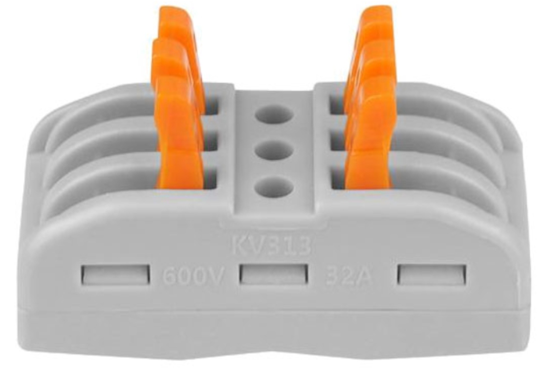 Dane techniczne: Kostka elektryczna - złączka elektryczna przelotowa automatyczna - z szybkozłączem - złączka łączeniowa bezśrubowa złączka elektryczna automatyczna potrójna - 3 torowa przelotowa automatyczna znamionowe napięcie: 250V znamionowy prąd: 32A Możliwość instalacji dowolnej kombinacji kabli linkowych i drutowych Możliwość łączenia kabli o różnych typach i przekrojach